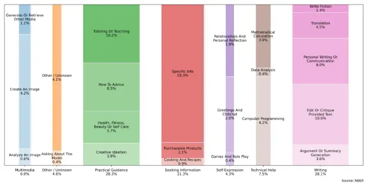 - Top use cases: Practical Guidance, Seeking Information, and Writing make up nearly 80% of all conversations