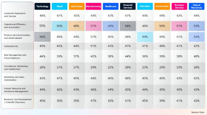 Interestingly, most industries are focusing their AI efforts on operational efficiency and automation — not just to cut costs, but to reimagine processes end-to-end. Yet, without AI readiness, efficiency gains may plateau before true transformation takes root.