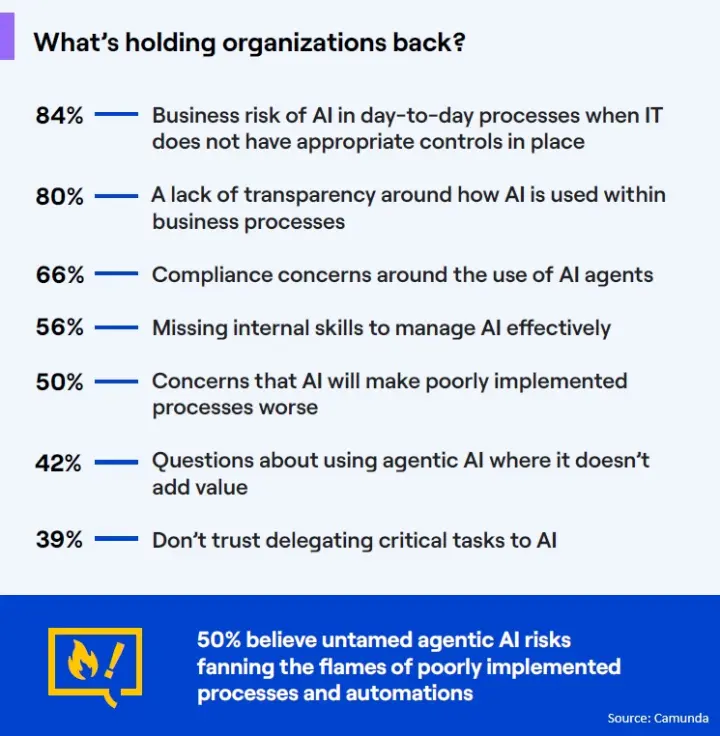 🔹 50% believe untamed agentic AI risks fanning the flames of poorly implemented processes and automations