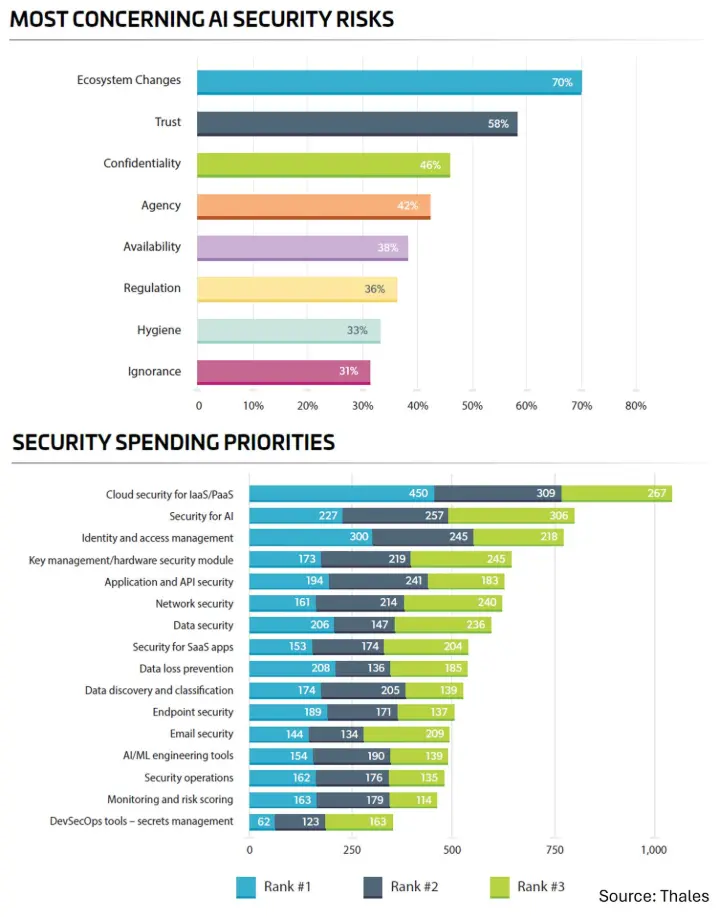 - 70% say the pace of change in the AI ecosystem is now the top AI security risk.