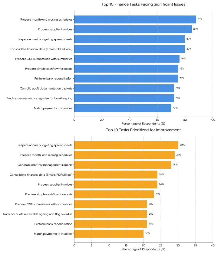 Supplier invoice processing is one example. 85% of finance operations leaders say it remains a major pain point. But the biggest issue in the data is month-end closing at 88%.